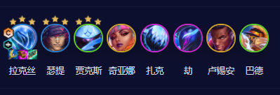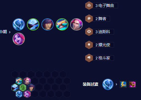 阵容羁绊:5 电子舞曲2 索尼克刺客2 舞者2 爵士2 灯光制造者2 战斗机