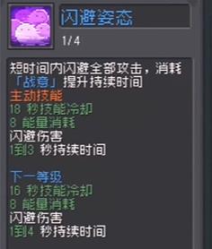 一定时间内闪避所有攻击,斗志可以增加持续时间。