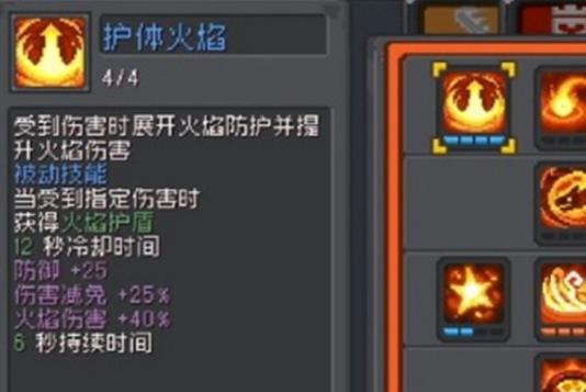 1.防护火焰:展开火焰屏障吸收伤害,增加自身火焰伤害,同时也增加自身防御。