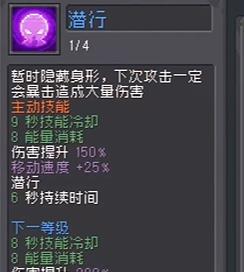 立即进入隐身状态,下次攻击肯定会造成暴击伤害。潜行最多可以持续6秒,在此期间会增加额外的移动速度。