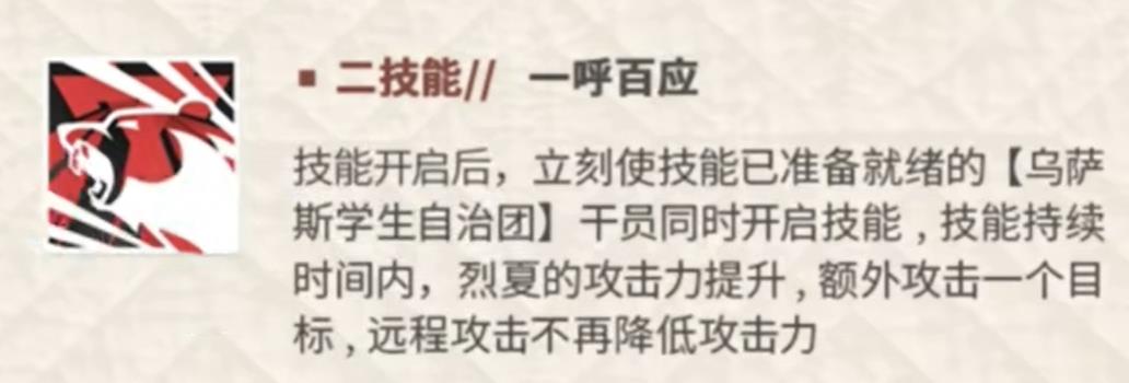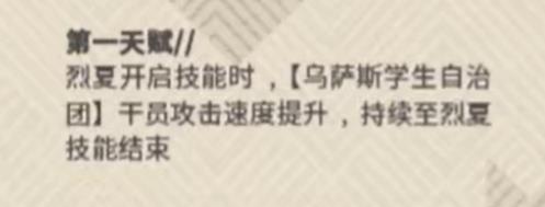 1.天赋:可以增加(美国学生会)干员的额外攻击速度。