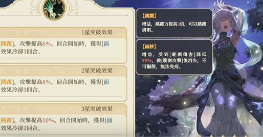 3.Nonovelle拥有强大的光环效果,可以帮助队友提供大量伤害。建议与王尔德角色搭配,王尔德组建后将成为团队的核心角色。