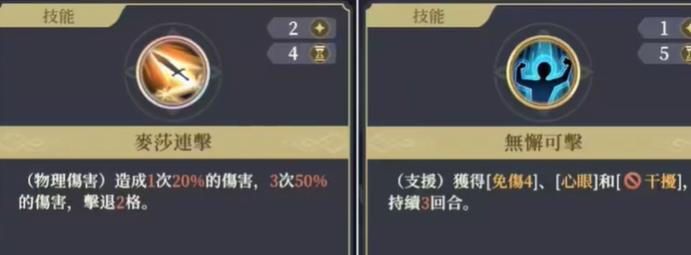 4、麦莎五级技能,建议选择格挡和反击。该技能可以在你受到攻击时反击敌人,让你在自己的回合前攻击对手一次。