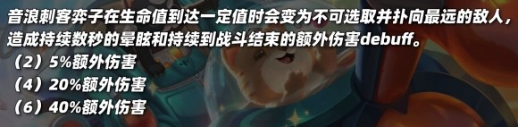 当这颗棋子的生命值下降到一定程度时,它会触发特殊技能,变得不可用,并自动扑向最远的玩家。攻击会对目标造成数秒的眩晕效果,同时还会获得持续数秒的额外加成。伤害增益