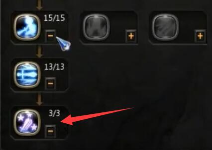 3、右边第二排,点1级和3级技能,点4级技能满;在第三行,指出三个技能:1、2、4。