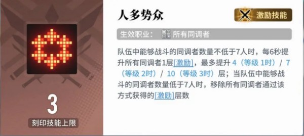 1、核心技能是人多力量大,能够快速提供人物提升的激励。