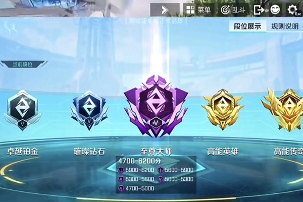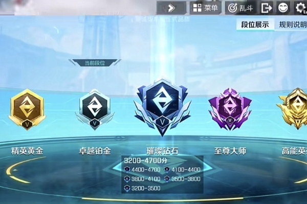 3、只有技术水平和游戏经验优秀的玩家才能获得钻石段位。大师级别是最高级别,只有极少数顶级玩家才能达到。