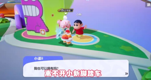 在圆梦星游戏中找到小新并与他交谈。对话后可以获得一辆自行车。骑自行车需要一定的技巧,需要控制好速度,不能急。玩家可以使用方形自行车与朋友一起骑行玩耍。