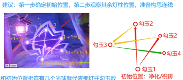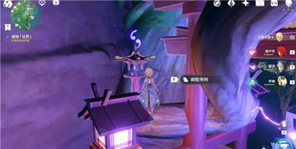 5.将右下角调整为4。最后回到原来的位置进行祈祷,杀死出现在牌坊下水池中的武士,完成净化。