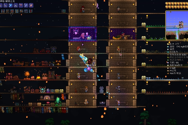 5、大平台用于对抗机械骷髅王、双魔眼、UFO等事件BOSS。小平台是用来对抗毁灭者的。如果生命值留在中间,很容易恢复。
