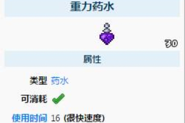 1. 重力药水是一种增益药水,使用时会提供重力增益。