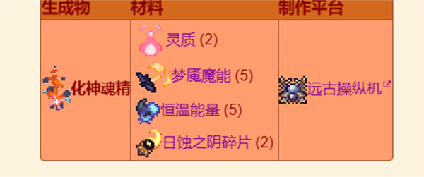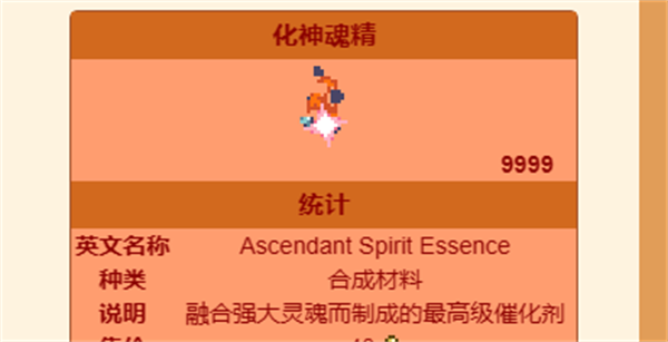 在泰拉瑞亚中,“化神精魄”是玩家在困难模式击败月亮领主后才能获得的材料。玩家击败神明吞噬者后可以用它来合成许多新物品。玩家可以使用精神合成品质、梦魇魔能、恒温能量、日食阴碎片来获得“神化精魄”。