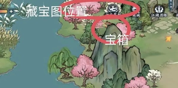 燕子坞芳村对决藏宝图,可以通过玩家在不同的地方寻找来获得。这张地图里有两张藏宝图可以获得,一张是游叟和老乞丐的。具体路线请参考图中标注位置!