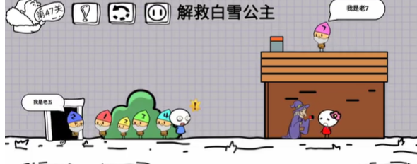 7、最后点击老七,七个人会合并为一个老者,然后就可以过关了。