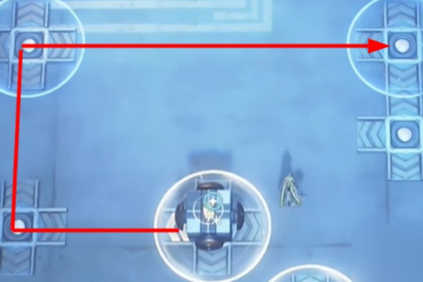 1。首先启动机器以切换形状,然后根据下图所示的路线来移动设备。