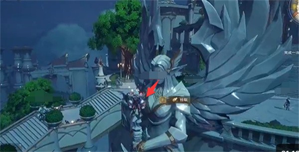 2。然后按照红色箭头的说明跳到中间的花坛上。