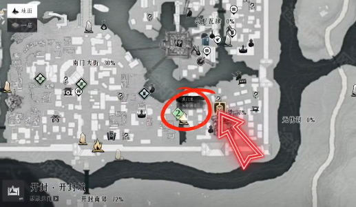 1。首先,我们需要来到Kaifeng City Corner Gate,然后标记图片中的位置。