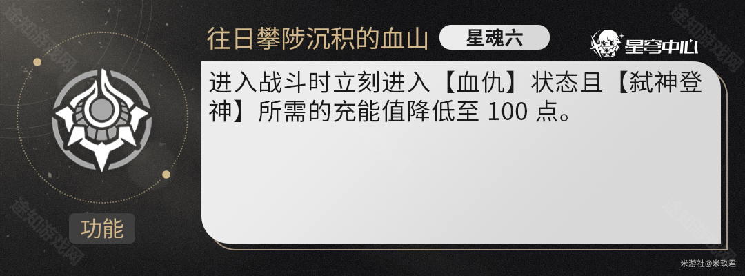 六个灵魂(上限):进入战斗时,立即输入[血液复仇]状态,[神杀死神]所需的指控价值减少到100分。一开始,完全解放的开始期将直接进入爆炸,从而大大提高了产出效率。它具有与《刀片》的《星灵魂6》相同的效果,它是一个非常强大的明星灵魂6,就像《星灵魂6》一样。