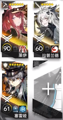 如图所示,开场场景依次由拉普兰(Front Up),塞雷亚(Sereya))和莱伊(Ley)(右前)部署