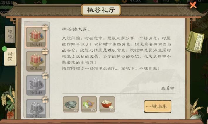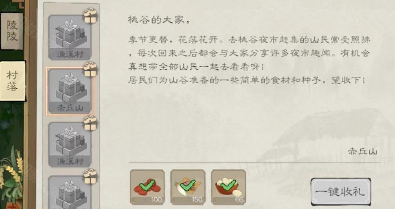 当季节变化时,将散布少量种子。如果几个村庄被解锁,您可以收到几个村庄的种子。每个村庄都会给予不同的捐款。 Yuxi Village将白菜种子和胡萝卜种子发送到红山丘中。