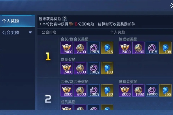 1。当联盟解决时,如果个人优点价值达到标准,您可以根据公会排名和个人行会职位获得相应的级别奖励。