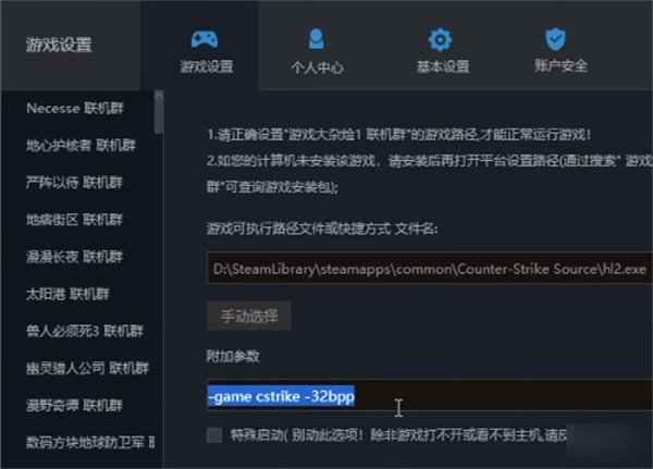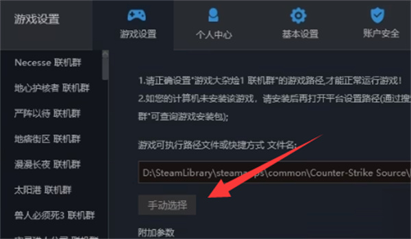 在游戏反恐来源中,玩家需要下载战斗平台,然后单击平台中的游戏输入,然后单击上面的“设置”选项,在手动选择中找到游戏反构成源的安装路径,选择应用程序,选择该应用程序,输入-game” - game在参数中