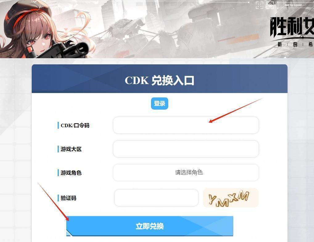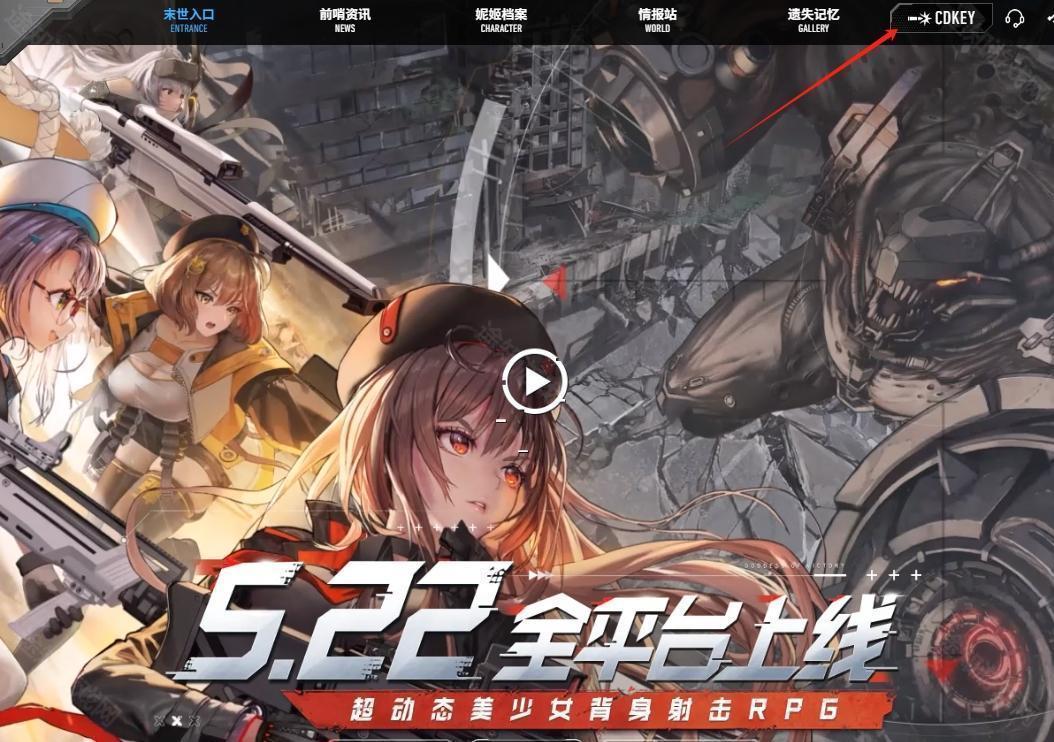1。输入官方游戏网站(https://nikke.qq.com/main.html),单击接口右上角的[CDKEY]兑换按钮以输入救赎界面