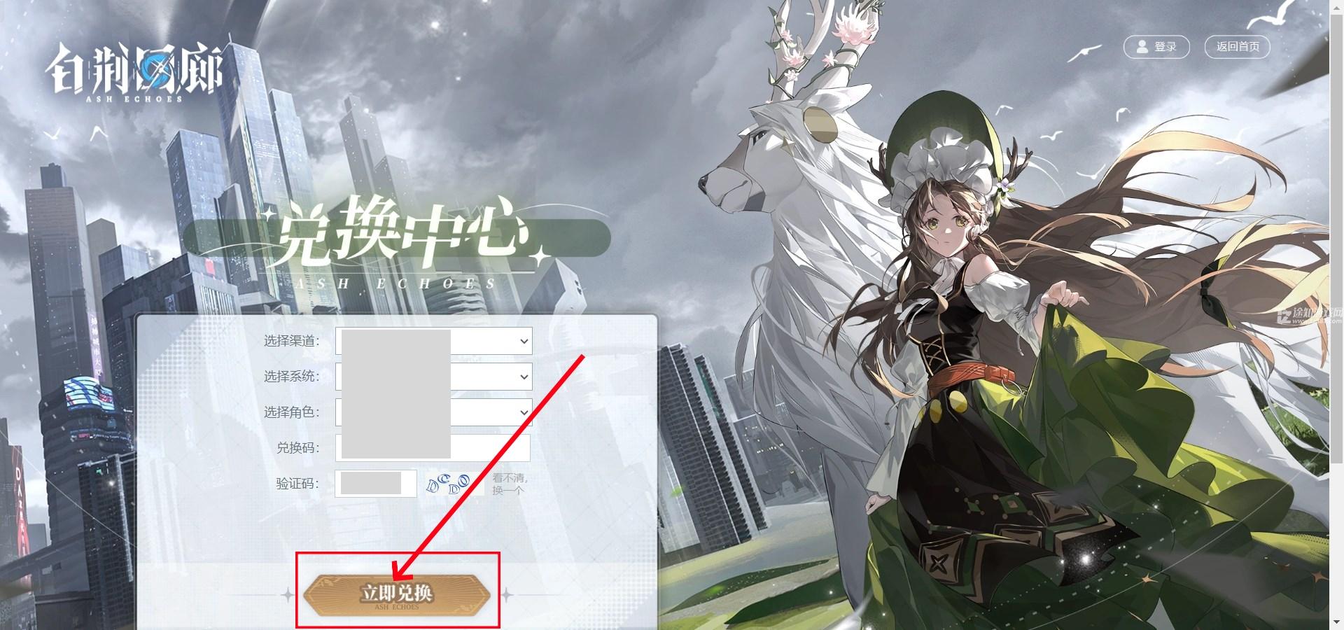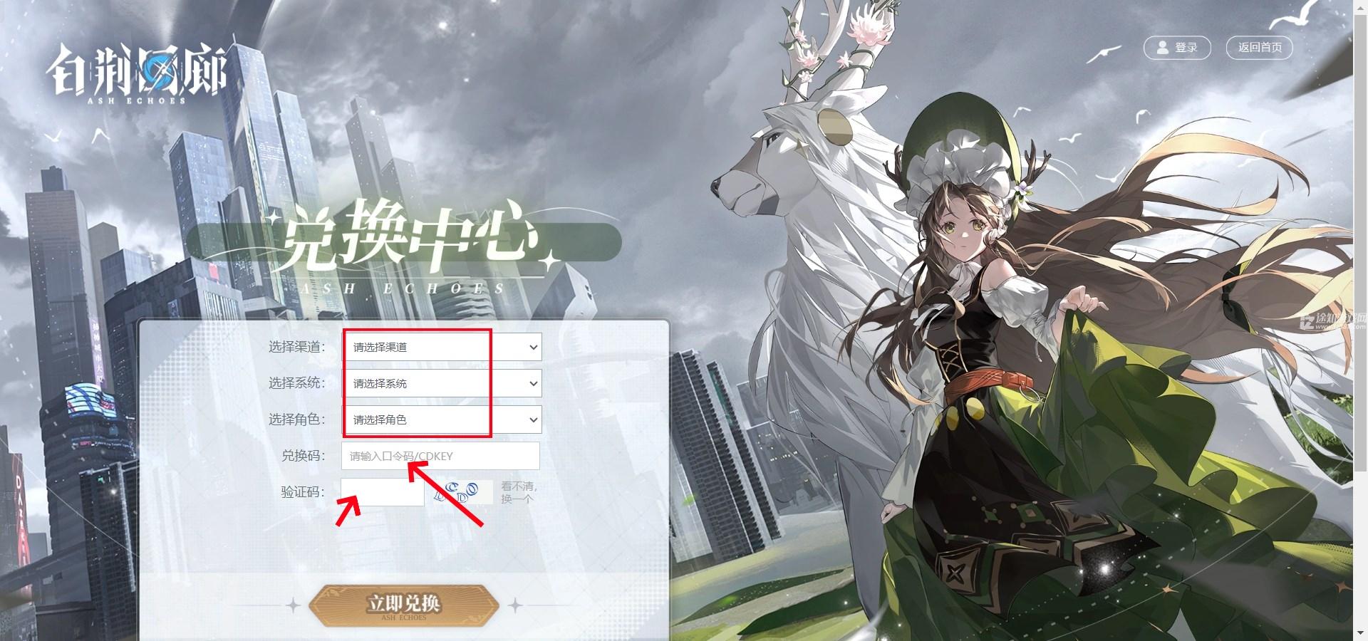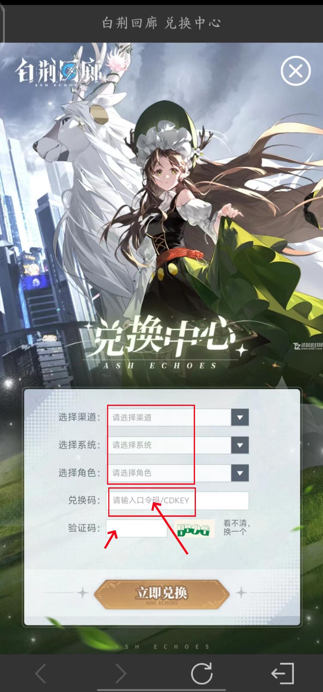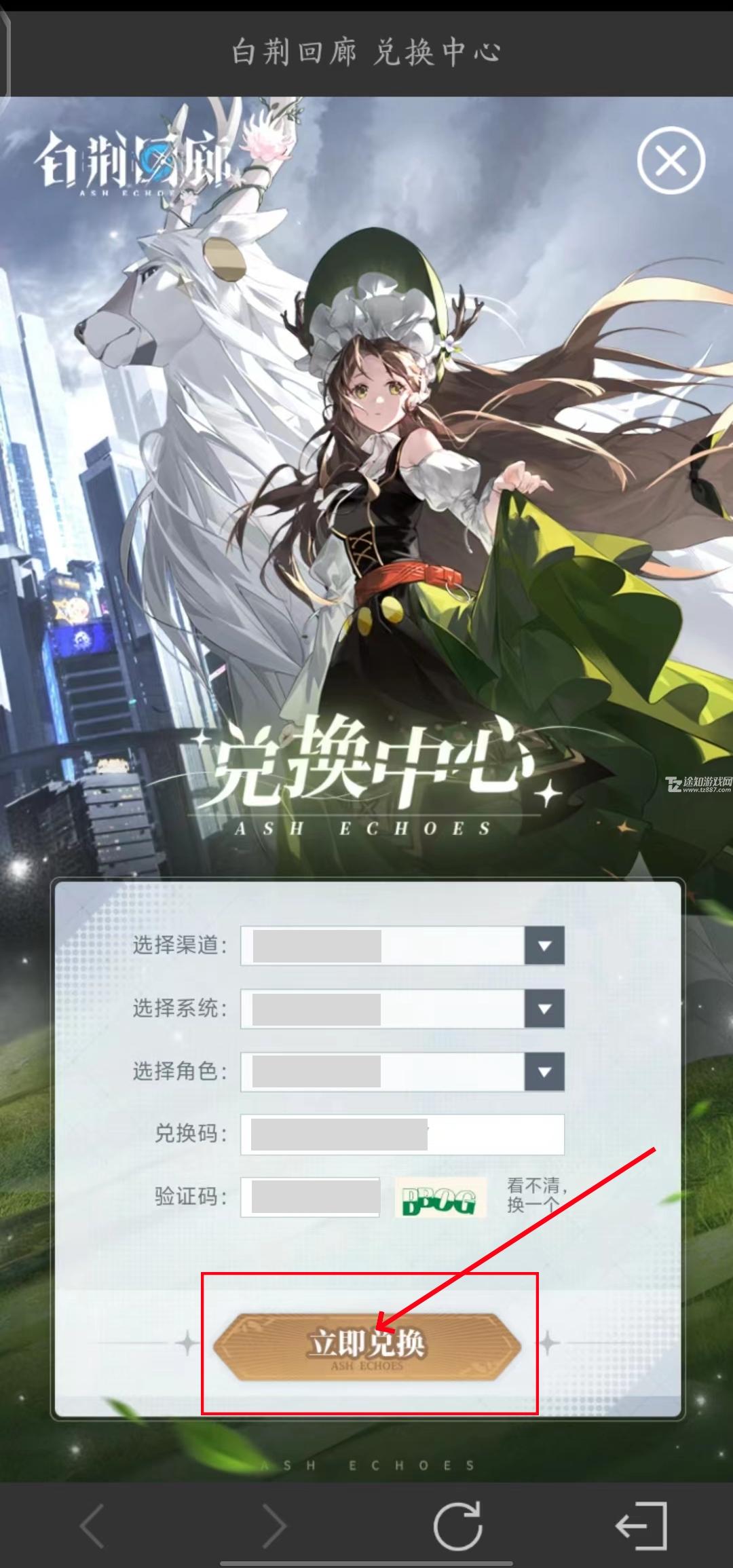 3。打开赎回代码使用门户网站,选择您自己的区域服务器,手机系统和帐户,然后输入赎回代码和验证代码。