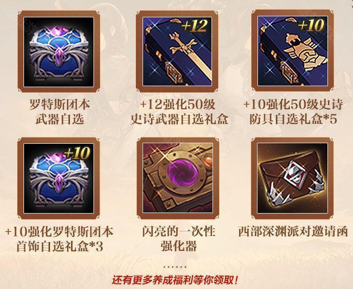 玩家将立即返回并获得增长奖励,例如全套50级EPIC设备自选礼品盒,+12武器增强优惠券(55级及以下),职业转换优惠券礼品盒等。创建一个新角色,以接收+12增强的Epic武器和+10增强的增强体型全身史诗。