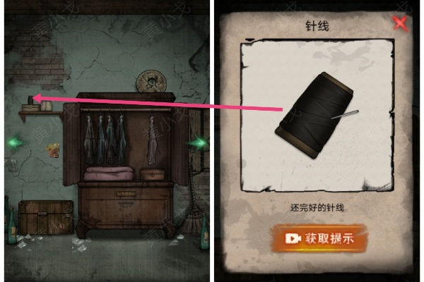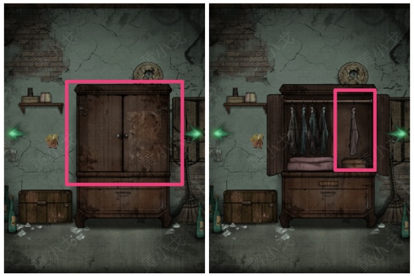 2。接下来找到衣柜并打开它,单击右侧的外套以获取发条。
