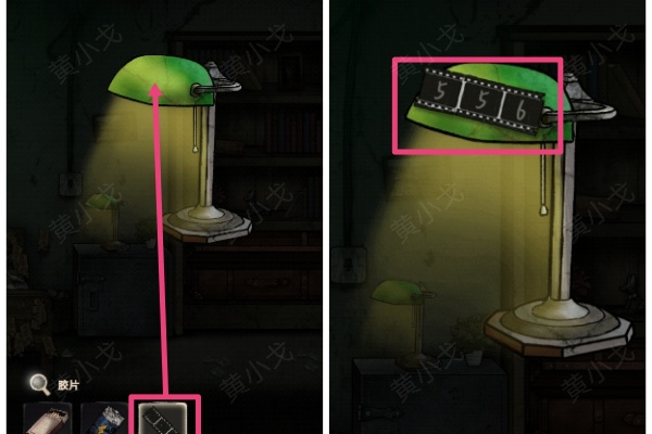 11。单击书柜上的日记以放置日记页面以获取线索,并在台灯上使用胶卷来获取线索。