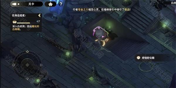 位置:击败白骨恶魔,进入白虎洞穴。您可以看到右侧道路上的宝藏。