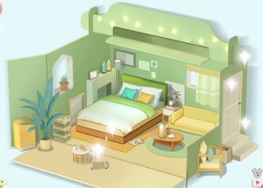 在绿色邻居的这个水平上,我们需要安排一个绿色的房间,将图片两侧的物品拖到房间中的相应位置,您可以首先放置床和枕头,将沙发和地毯放在床旁边,然后将家具(例如桌子,椅子,床头旁桌子等)放在门上,然后记住将它们放在门上并完成。