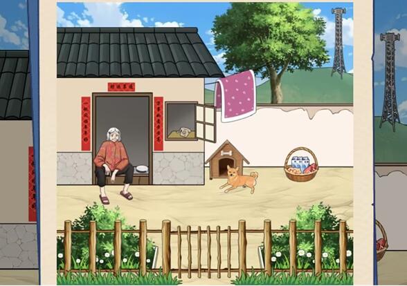 2。首先将钱拖到奶奶,然后把钱拖到奶奶后面的房子里。按住钱图标拖动。