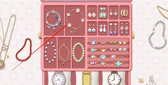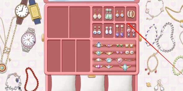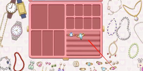 水平中间有一个母亲的珠宝盒,周围有散落的珠宝。根据级别的名称,可以推断玩家需要将珠宝汇总到珠宝盒中,将三个手表放在下面的抽屉中的手表枕头上,而其他手表可以通过大小和大小来传递。