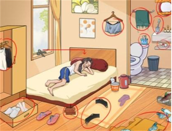 1。我想告诉你的第一件事是这个级别。玩家需要使用放大镜来找出男友在哪里小气。玩家需要单击损坏的裤子,拉丝毛巾,装袋的洗发水,塑料镜,油炸牙刷,捡起破损的袜子,撕裂的袜子,床上的瓷砖和挤压牙膏。