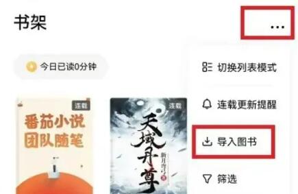 2。然后单击右上角的三个点,然后选择“导入书籍”。