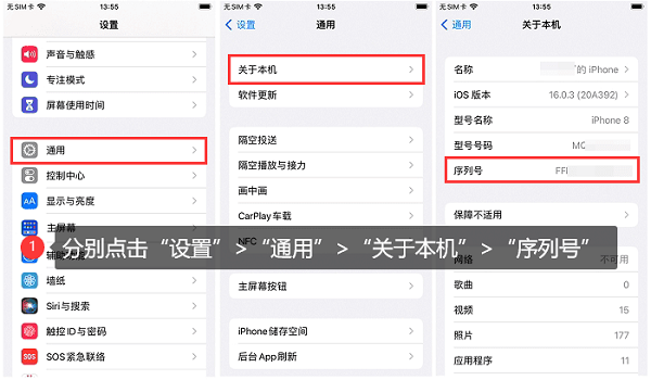 3。序列号您可以在Apple设置菜单中找到以下选项,您可以在其中看到手机的序列号。