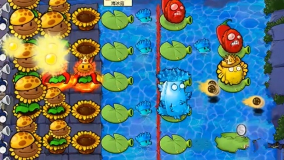 3。然后在红线上种冰山蘑菇和向日葵皇后。