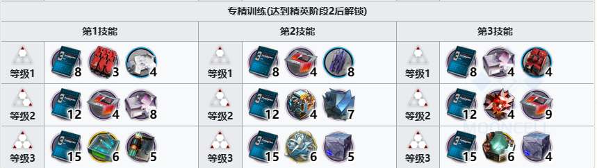 精英第一阶段:龙门币*3万,重装芯片*5,聚酯*10,酮凝集*3