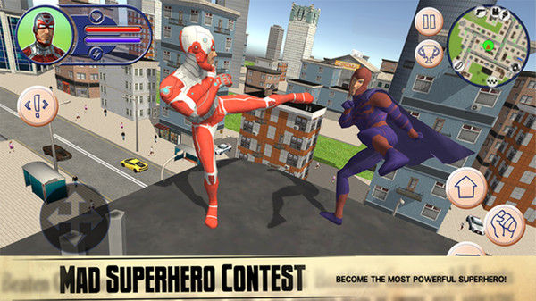 :疯狂的超级英雄大赛是一款动作冒险对战角色扮演手游。当你在成为超级英雄的路上,你会遇到各种各样的挑战。城市的大街小巷,山村的荒漠,都有专为你而来的挑战者。为了你的名誉骚扰你。但你作为超级英雄的存在是为了拯救世界。杀死他们是你的责任。