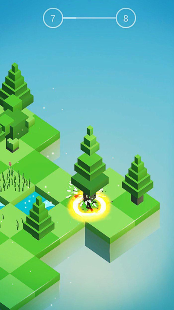 轻松有趣的游戏玩法非常简单。玩家需要使用手中的斧头在森林中前进。当你遇到阻碍你的树木时,你可以用斧头砍掉它们。