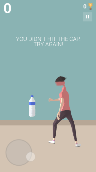 3D)的灵感来自于网络上最新的踢瓶盖挑战赛,众多巨星名流也加入了踢瓶盖挑战赛队伍。如果你在现实生活中不敢踢瓶盖,或者实在是力不从心,可以下载这款游戏来体验一下。玩法很简单,你只需要控制小人腿的位置,准确瞄准瓶盖即可,不要踢瓶子也不要踢空!