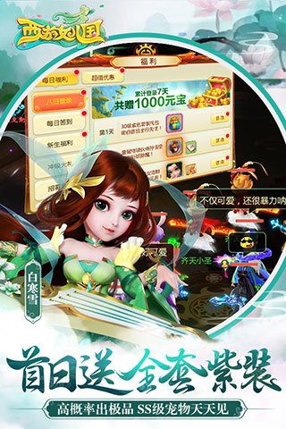 超强福利,全套紫装、SS级珍兽、高级技能书……7天内免费送。