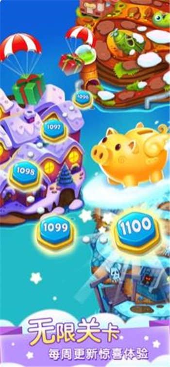超过900个丰富的冒险关卡,多种关卡元素,都有独特的障碍,每周都会增加新的关卡。