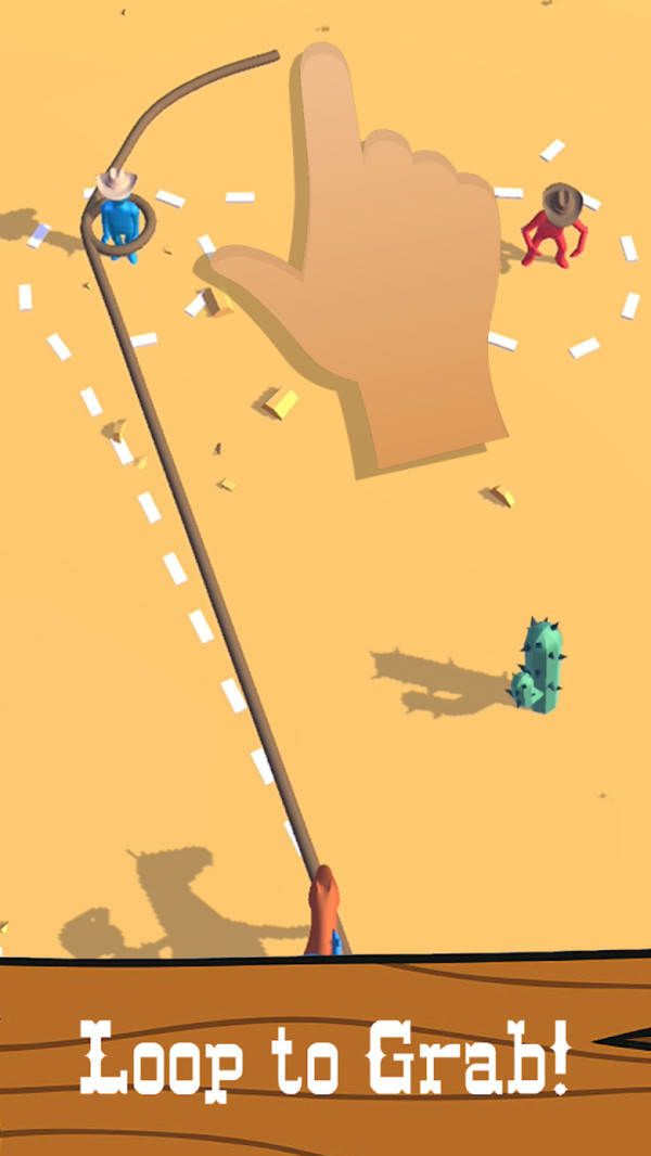 在:牛仔绳索大战游戏中,玩家将来到西部,扮演骑着马的西部牛仔。你需要用你的绞索绑住其他牛仔。玩法非常简单,按住并滑动屏幕扔出套索,将所有人放在套索上,松开即可收回。非常好玩又好玩的休闲游戏。