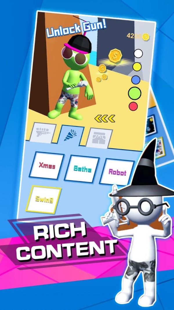 :疯狂射击枪是一款有趣的小型竞技射击游戏。游戏中,我们将与赛场上的对手展开一场激动人心的对决,操作简单轻松,玩法有趣休闲,还有大量的关卡和模式。所有的都在里面。
