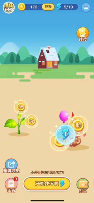 疯狂找不同游戏拥有丰富的游戏画面。玩家需要不断寻找不同的地方。操作非常简单。他们可以不断地完成各种任务的挑战,不断地升级他们的小房子。喜欢的玩家可以尝试一下。