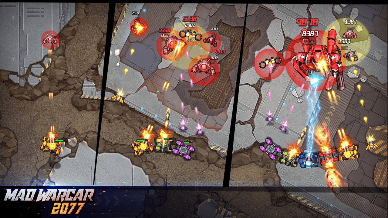 游戏《疯狂战车2077》采用精致的卡通风格、精彩的游戏画面、科技背景画面设计、超酷的机甲战车造型、动感悦耳的背景音乐,并配有逼真的射击音效,休闲轻松的玩法,简单易用的操作方式,让你在游戏中感受到枪声的紧张与热血,以及射击带来的刺激与快感。