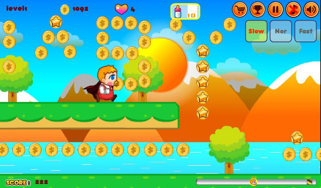 宝贝跑酷是一款非常卡通的动作跑酷休闲游戏。宝宝们在探索的路上遇到了宝地。区域内有无数的金币。他想一口气把它们全部搞定。把这些金币放进自己的口袋里,现在我们就去游戏里帮助他吧!然而,这片宝地中也存在着各种危险!